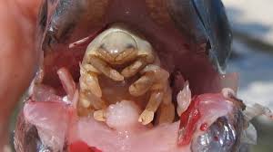 Parasit yang satu ini hidup di dalam mulut ikan dan lebih sering disebut sebagai 'kutu lidah ikan'. Parasit krustasea dari keluarga Cymothoidae ini masuk ke dalam lidah ikan melalui insang saat ikan menarik air dan kemudian menempel di dasar lidah ikan.